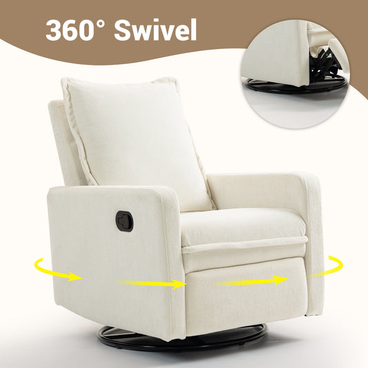 Swivel Rocker Recliner, Velvet 360°Swivel Rocking Recliner, Glider Rocking Chair for Nursery, Small Rocker Chair for Small Space, Manual Recliner for Adults for Home Theater, White